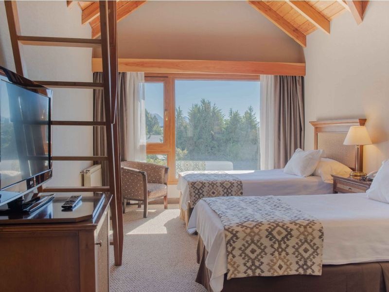 Cálidas y confortables habitaciones con vista directa al Lago Nahuel Huapi. Cuentan con cama Queen Size. Única apta para adicionar hasta una cama extra a requerir, sujeto a disponibilidad.