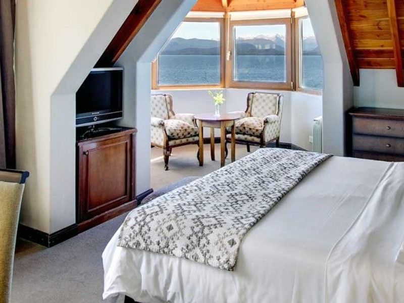 Amplia Suite con bow window con vista panorámicas del lago. Baño completo con hidromasaje. Cama King Size y amenities de bienvenida.